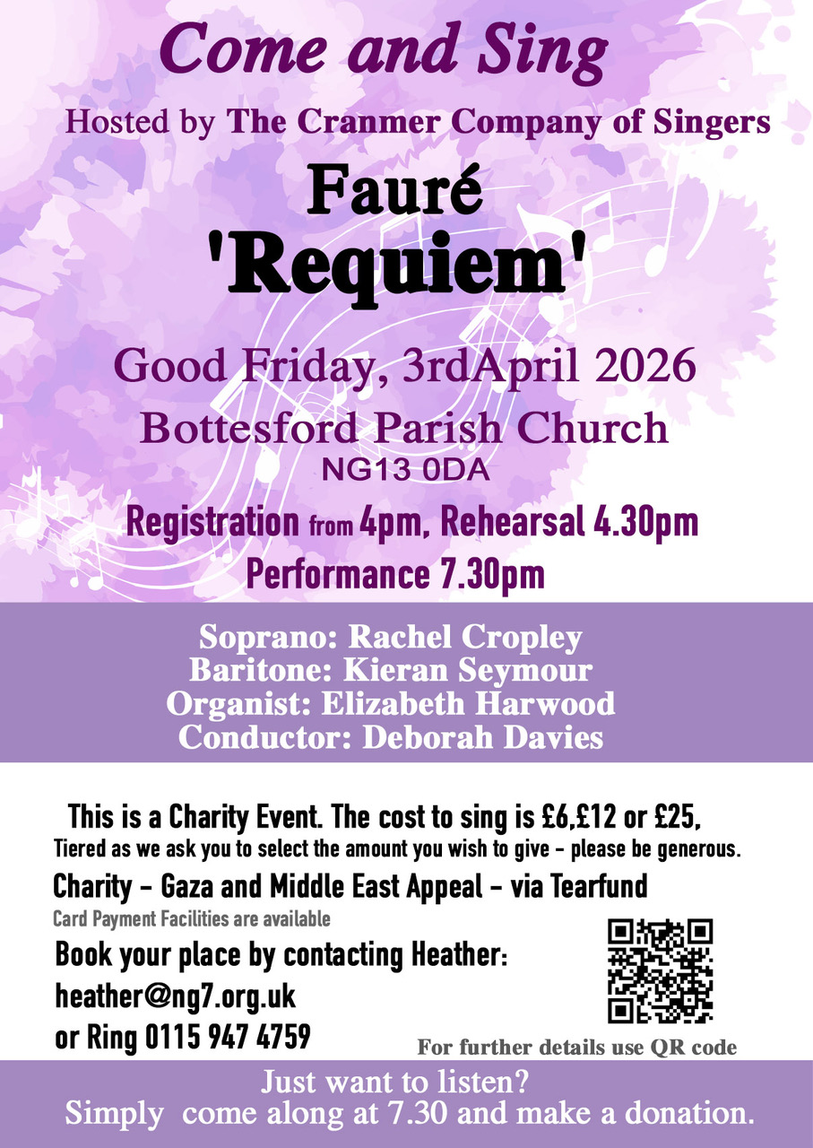 The Cranmer Company of Singers present their Good Friday 'Come and Sing' Fauré Requiem in Bottesford Church.